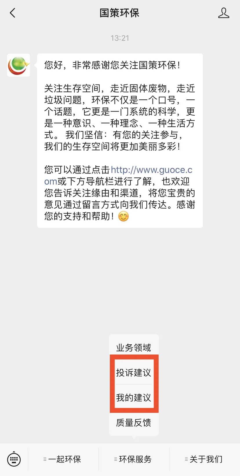 同時(shí),社會(huì)公眾可通過(guò)關(guān)注國(guó)策環(huán)保微信公眾號(hào),對(duì)國(guó)策環(huán)保運(yùn)營(yíng)項(xiàng)目的環(huán)衛(wèi)質(zhì)量和服務(wù)水平提出意見(jiàn)和建議,對(duì)保潔不到位、清運(yùn)不及時(shí)的路段或點(diǎn)位拍照上傳,反饋到云平臺(tái),國(guó)策環(huán)保將根據(jù)處理進(jìn)度,推送處理結(jié)果,達(dá)到社會(huì)共治的創(chuàng)舉。
